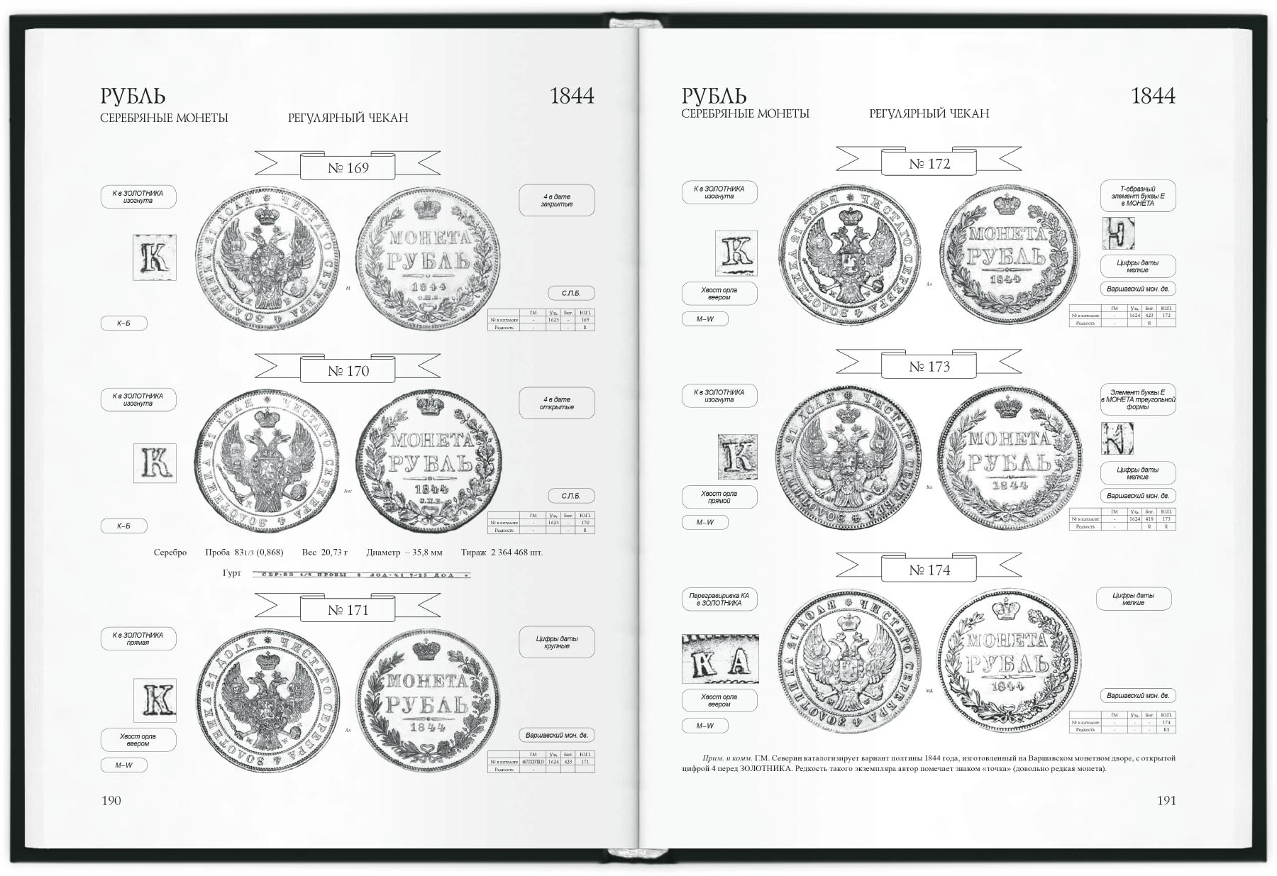Вторая часть труда является каталогом монет Николая I крупного достоинства, внешнее оформление которых концептуально отвечает решению поставленных задач. Такой принцип отбора позволил более предметно подойти к реализации идей по исследованию монет с позиций иконографии и иконологии. Спектр каталогизированных монет расширен за счет включения в состав контента штемпельных вариантов. Приведены высококачественные иллюстрации золотых, платиновых и серебряных денежных знаков номиналом от полтин до 12-рублевиков, дающие возможность в деталях изучать изображения на обеих сторонах искомых монет.