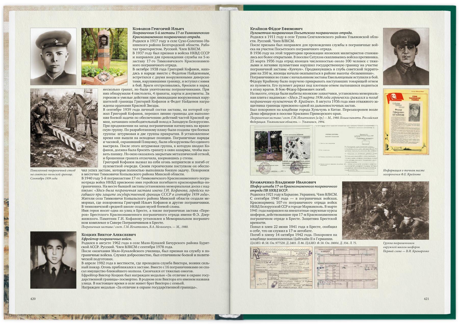 Историко-документальное издание посвящено подвигам советских пограничников с 1917 по 1991 год, с особым вниманием к периоду Великой Отечественной войны 1941–1945 годов. Почти все описанные эпизоды подтверждены архивными материалами: наградными документами, листовками, дивизионными и фронтовыми газетами, политдонесениями, мемуарами военачальников и воспоминаниями участников боев.